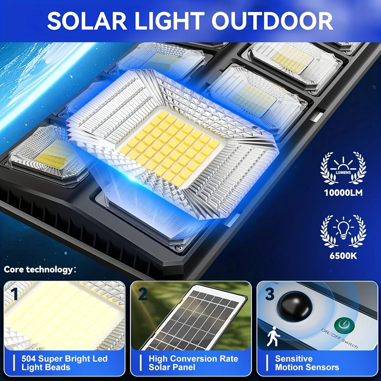 100,000LM Solar Flood Light6500K, 504 LEDs, IP65, Motion Sensor, Remote. For Parking Lot, Yard, Basketball Court